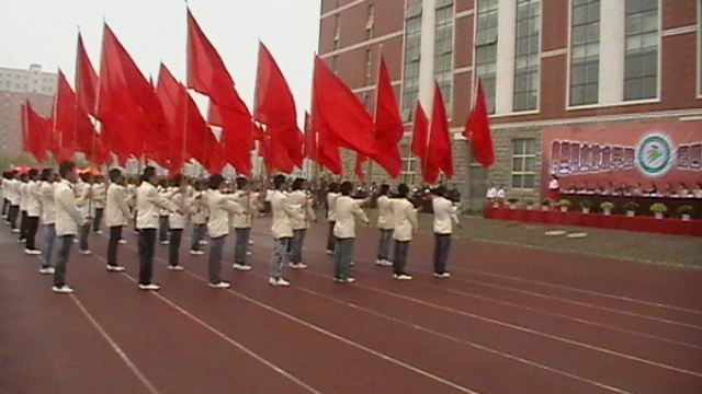运动场上彩旗飘扬,乐声嘹亮,国旗队庄严的护送着国旗、校旗、运动会会徽缓缓入场。跟随着的军乐团、团委彩旗队、裁判员、教职工、学生会、九个二级学院与继续教育学院的运动员,排着整齐的方阵队伍进入运动场,走向主席台,并接受院领导的检阅,他们迈着矫健的步伐、喊着响亮的口号拉开了本届运动会的帷幕。