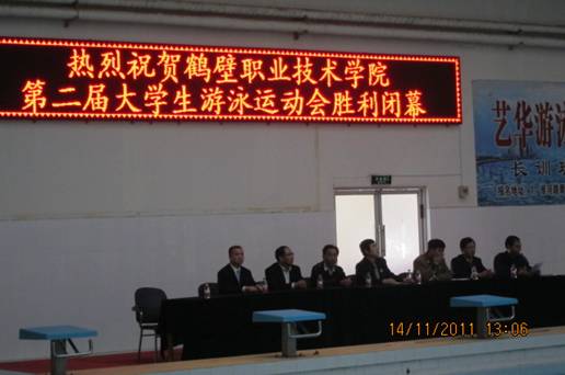 2011年11月13日上午11点整,beat365官方唯一入口第二届大学生游泳运动会闭幕式在市游泳馆隆重举行。经过2天的激烈比赛,在学院领导、各二级学院领导的支持和全体裁判员、运动员、工作人员的共同努力下,圆满的完成了全部比赛项目,大会取得了圆满成功。
