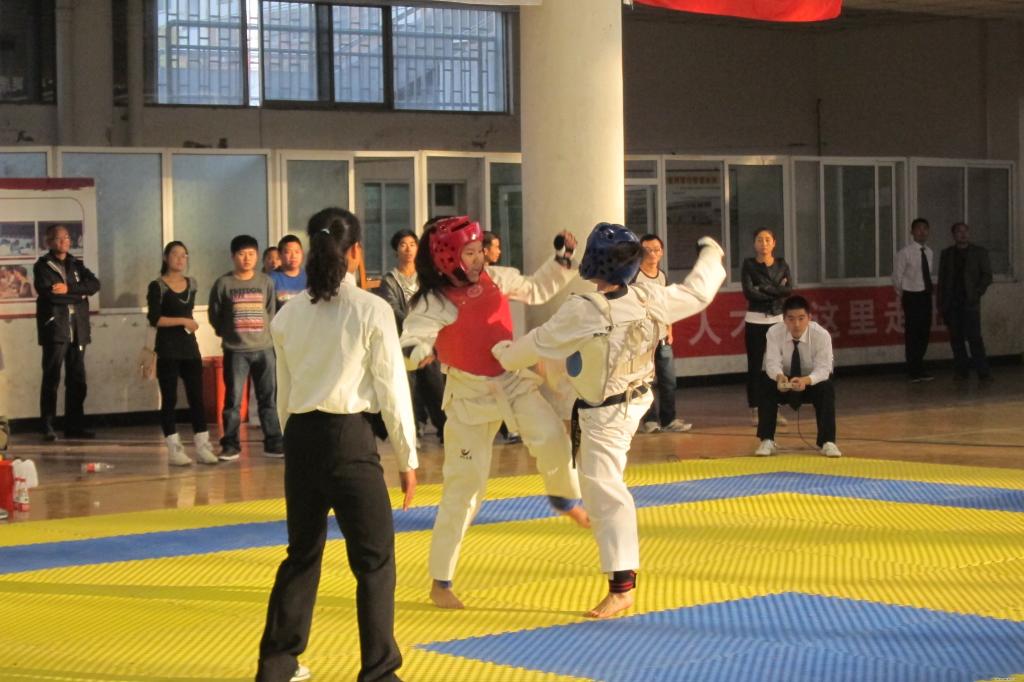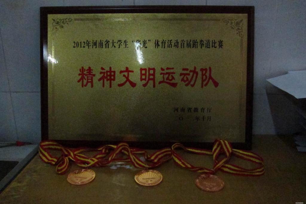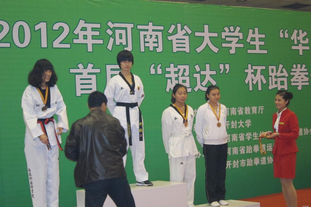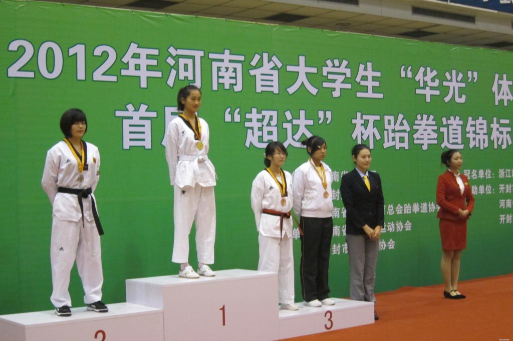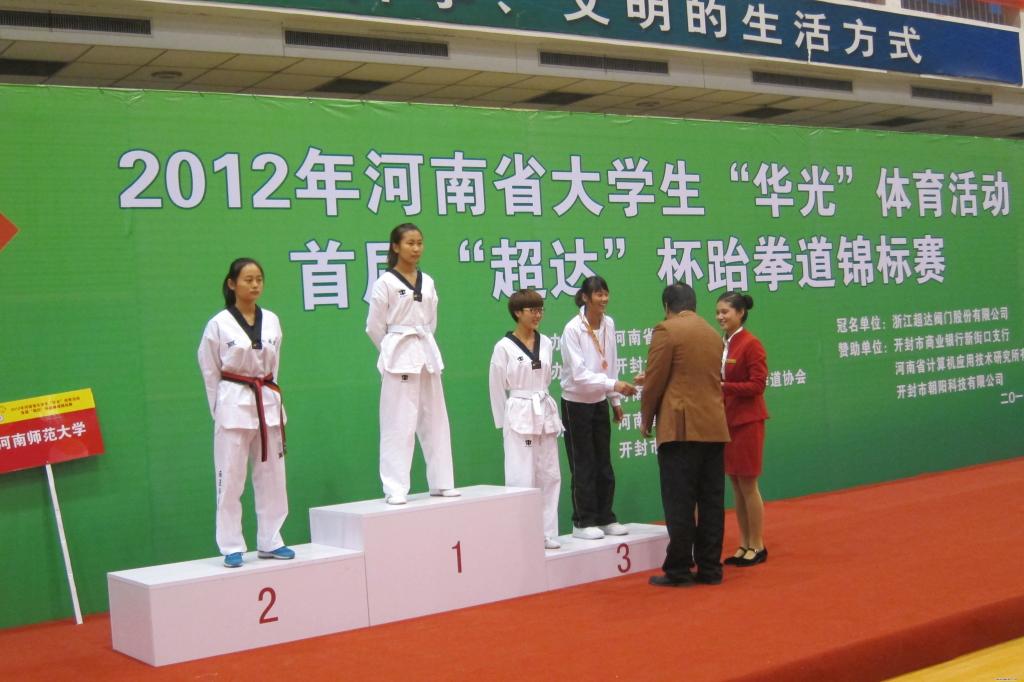 2012年河南省大学生“华光”体育活动首届“超达”杯跆拳道锦标赛于2012年10月28日下午在开封大学胜利闭幕!本届“超达”杯跆拳道比赛历时2天,共有15所高校参加,参赛队员200多名,汇聚了河南省高校跆拳道精英。为积极备战本次运动会,公共体育教研部按照学院领导的要求,于6月份选拔6名队员成立学院跆拳道代表队,在公共体育教研部直接领导下,通过教练组的合理安排、科学训练,提高了运动员的技、战术水平。赛场上运动员不畏强手,斗智斗勇,奋力拼搏,在甲组的比赛中,取得了男子84kg;女子47kg、51kg、55kg的4个级别的铜牌,同时获得了2012年河南省大学生“华光”体育活动首届“超达”杯跆拳道锦标赛“精神文明运动队”荣誉称号,为学院挣得了荣誉,为学院跆拳道今后的发展和提高奠定了坚实的基础。
