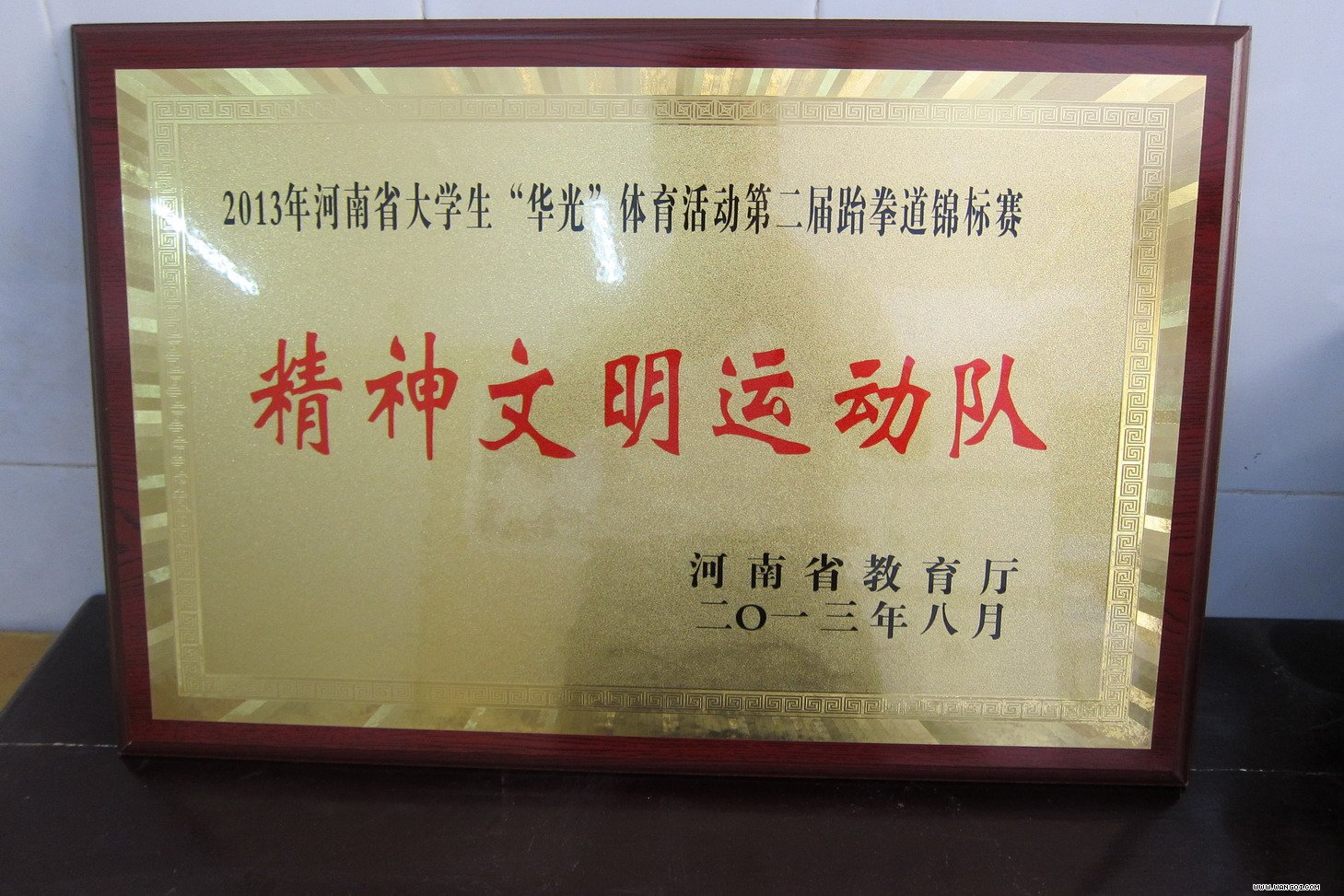 8 月26日 -29日, “欧帕”杯2013年河南省大学生“华光”体育活动第二届跆拳道锦标赛在开封大学举行,我院代表队取得了2银、3铜、4个第五名,竞技组女子团体总分第三名的优异成绩,被河南省教育厅授予“精神文明奖”荣誉称号。