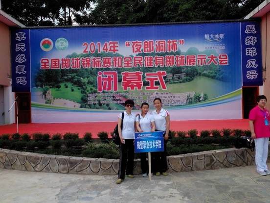 国家体育总局小球运动管理中心、中国掷球协会、贵州省体育局主办的“2014年全国地掷球锦标赛与全民健身掷球展示大会”,于2014年5月16日至5月25日在贵州夜郎洞风景区举行。 参加的队伍有浙江工贸、职业技术学院、西安体院、北京体育大学、衢州职业,西安体院高职、河南科技学院中国石化、阳谷体育等21个队伍。我院派罗培秀、袁慧敏、秦瑞瑞三名女队员参加小金属项目比赛,取得了展示男女混双准确抛击第一名,锦标赛女子单打第三名,女子双打第四名,女子团体第五名,女子准确抛击第六名。