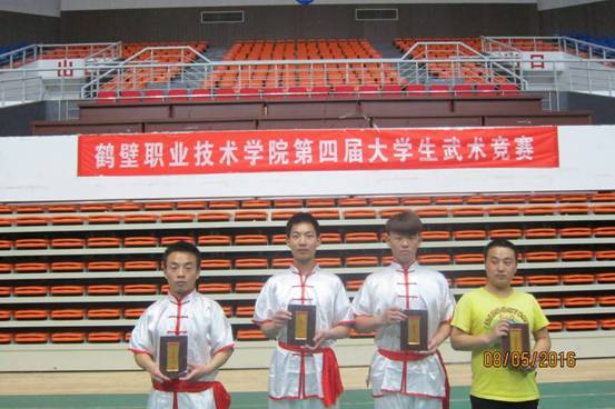 通过本次比赛进一步提高学生身体健康水平,增强学生身体素质,促进了我院武术运动水平的进一步提升,获得本次比赛优秀教练员的是:王喆、杨李芳、王培尧、苏醒、李翔、李志杰,获得优秀裁判员的是:李学锋、秦瑞瑞、王合成、江素香、张利娜、夏璐、姚红艳、吴琼、陈晓蕊、吴晶茹、王琪琦、任声培,经过激烈的竞争各项目名次如下: