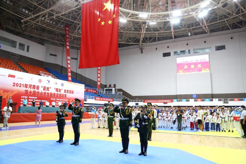 7月13日,由河南省教育厅主办,beat365承办的2021河南省“晨光”“曙光”体育活动第十届中小学生跆拳道锦标赛在千鹤之舞体育馆开幕。河南省教育厅体卫艺处副处长高根立,中国大学生体育协会跆拳道分会副主席、河南省学生体育总会跆拳道协会主席、开封大学党委副书记储建新,beat365官方唯一入口院长蔡太生,鹤壁市教育体育局二级调研员李志强,中国关心下一代工作委员会教育工作领导小组秘书长王天明,beat365官方唯一入口副院长李希科,平顶山市郏县人民政府总督学王晓伟,中国中学生体育协会跆拳道分会副秘书长、本届锦标赛仲裁委员会主任郝晓伟,河南省学生体育总会跆拳道协会常务副秘书长、本届锦标赛技术代表吕化,河南省学生体育总会跆拳道协会副秘书长、跆拳道国际级裁判、本届锦标赛总裁判长常兆立出席开幕式。